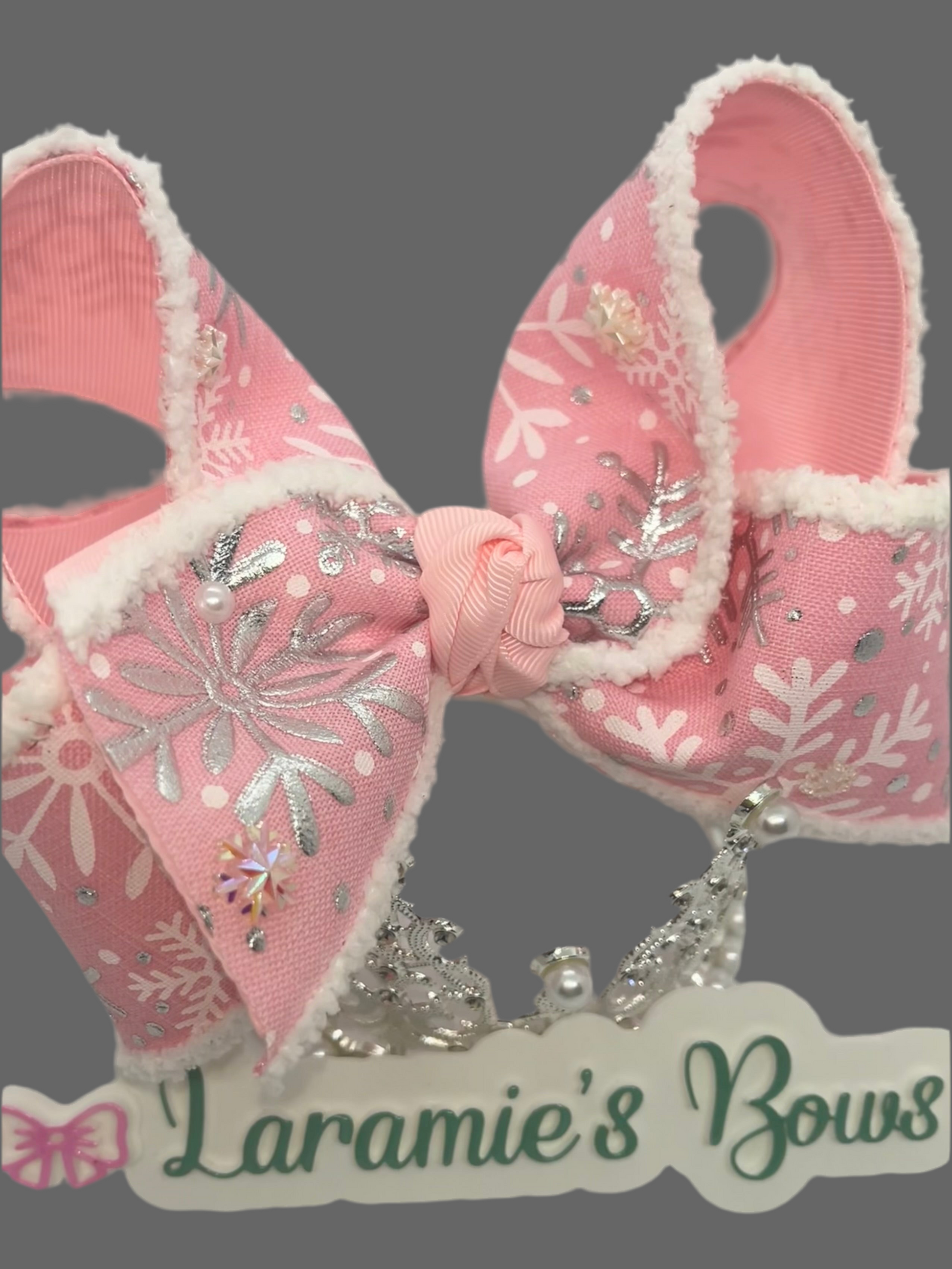 Pink bow with metallic snowflakes