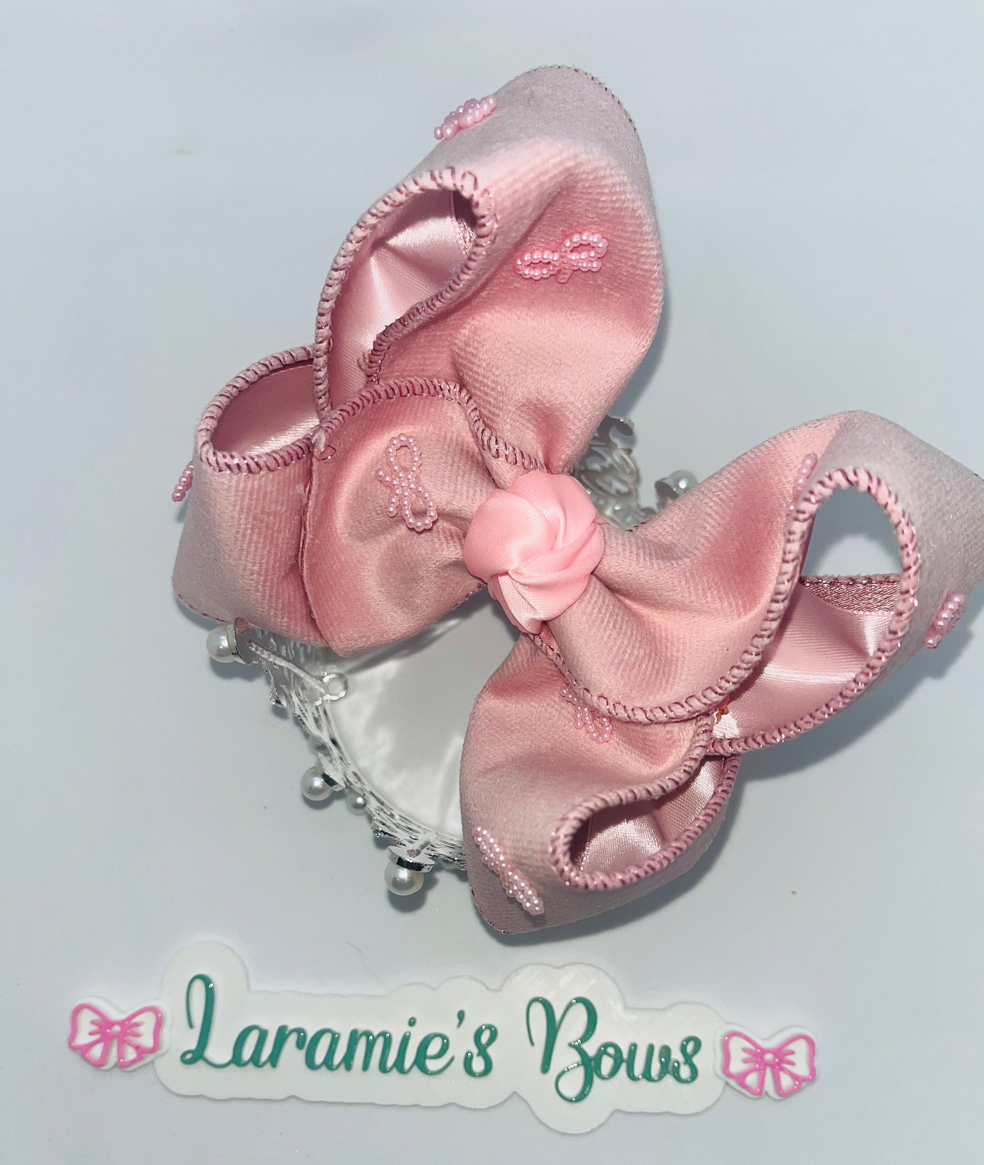 Dusty pink velvet & satin lined with added bow pearls
